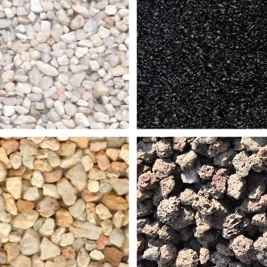Umfangreiches Sortiment an Sanden, Kiesen, Splitten, in verschiedenen Körnungen und Farbgebungen